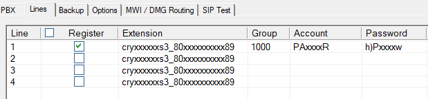 | Register accounts using | Select PBX address. |