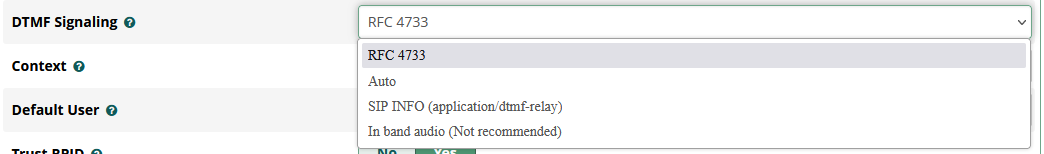 In this example choosing info would cause the DV2000 to fail. The setting should be set to RFC4733_info.