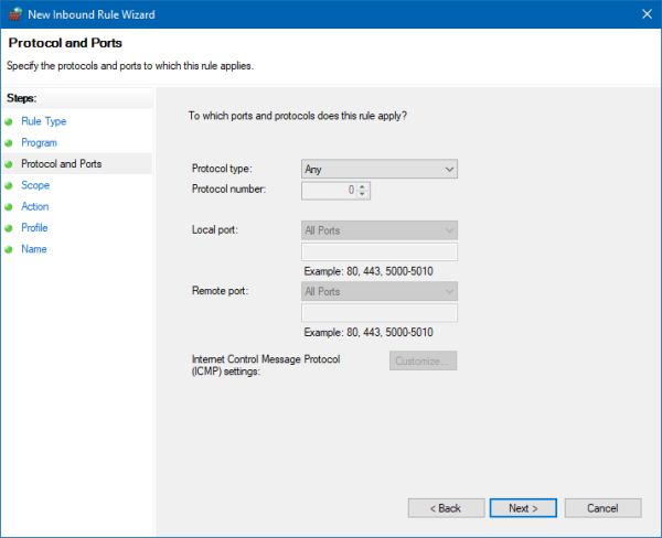 These rules can be added and modified in Windows Control Panel, Windows Defender Firewall located under the Advanced Settings.