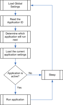 The flowchart below provides a basic overview of how this process works on each voice port that has been assigned the Patient Reminder application. By cycling through the applications in this fashion, each application is guaranteed equal access to the voice lines to make calls in a timely fashion.