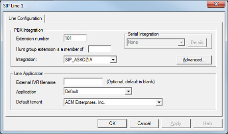 | Extension | Specifies the extension number associated with the given line. On SIP-enabled systems, this must be set correctly for the integration to work. On non-SIP systems, whether this field is required depends on the PBX. |