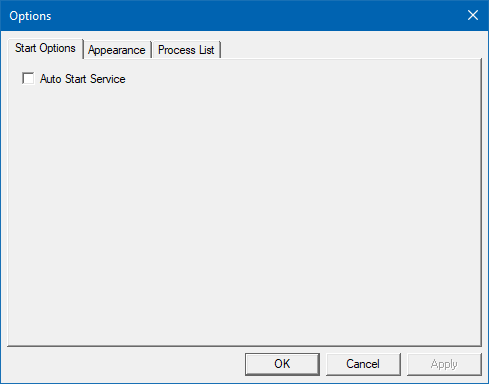 | Auto start | If checked, the selected process will be automatically started when the main service starts up. |