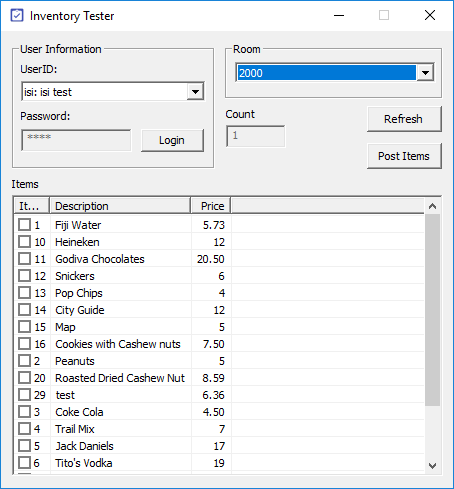 Inventory Tester is used to test the item server. This utility is limited to testing, so the quantities are limited to 1.