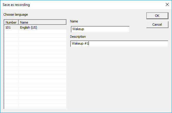 In this example we have a professionally recorded WAV file which once saved will be played as the wakeup message.