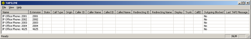 Once you have opened one or more devices, the grid window will change to display a table with several columns, as shown in the figure below. Each row in the table represents a single extension or device.