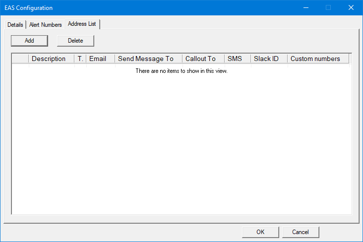 | Numbers | The emergency number(s) that will generate alerts to this address. Enter zero or more numbers, separated by commas. Optional. Overrides the global list for this address only. If blank, then the global list applies. Any number entered must also appear in the global list for this server. |