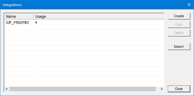 Click New to create a new PBX template from scratch. This will open the Integration Template Editor with the Save button disabled. After you have configured all the settings as desired, click Save As to give the new template a name and save the file. It will then appear in the active list and you will be able to assign it to any line.