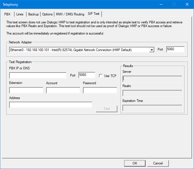 | Port | This is the IP port which the test will use to listen for packets from the PBX. |